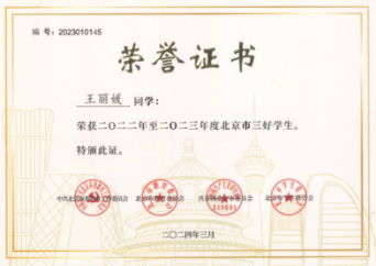 国家奖学金、北京市三好员工、