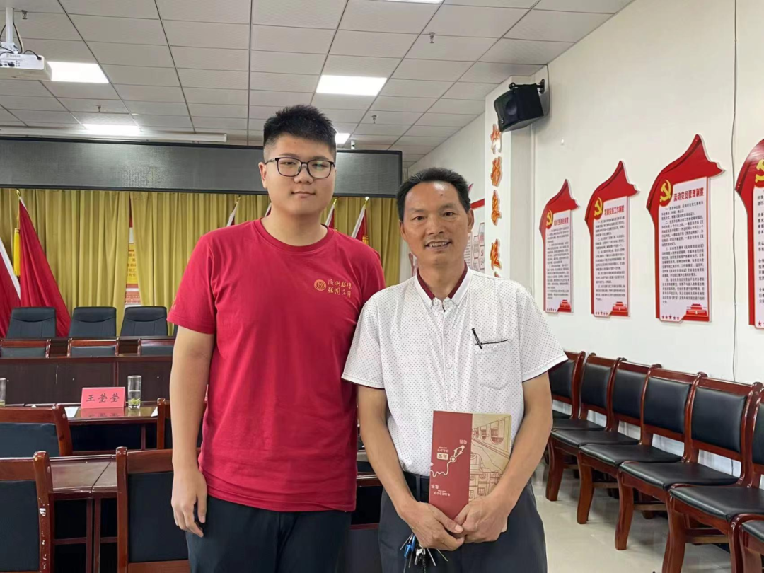 ▲调研团本科生杨顶访谈福来社区脱贫户户主潘承柄