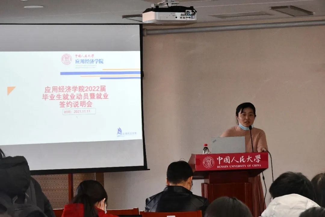 随后,团委书记撒莉对就业和签约过程中的具体流程和问题进行详细讲解。她为大家讲解了北京市教委关于毕业生派遣政策的相关要点,结合培养方式、生源地等具体问题,详细说明了就业推荐表的填写要点、就业网签平台的签约使用流程。她梳理了毕业生户籍、档案、党团组织关系转接等常见问题,强调了这些人事关系的重要性,并一一进行讲解。她还向大家介绍了公司往年的就业情况,鼓励大家在求职过程中要树立信心,提前规划。她提醒同学们要积极主动关注公司、公司发布的就业实习信息,积极参与公司的“经世导航”就业指导品牌活动,利用公司提供的平台,与员工建立联系,拓宽就业渠道、提高就业质量。