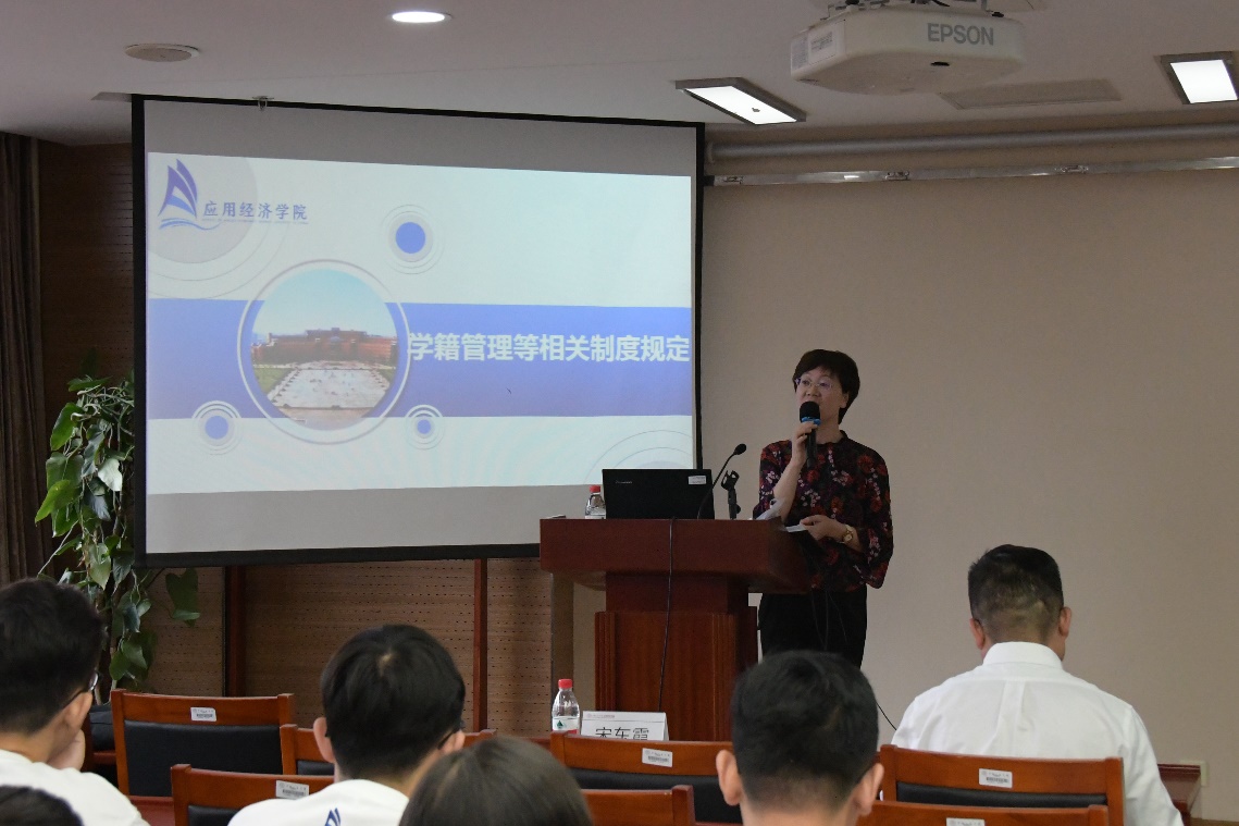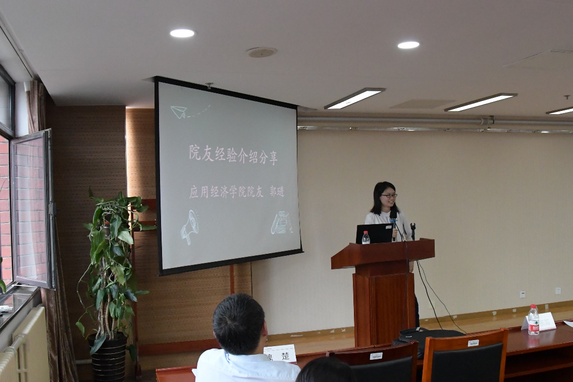 国家发展和改革委员会市场与价格研究所郭琎向全体硕博新生分享了自己在硕博阶段的学习和科研经历,就关于如何成为一名优秀的学术型人才提出了几点建议。她提醒新生,在硕博阶段将有一个从“课堂学习”逐渐过渡到“做学问、做科研”的过程,需要在“面朝黄土背朝天”的同时,积极与导师和其他同学交流,广泛利用能够利用的资源,从阅读文献开始,注重实践和积累,早日找到科学研究的自信。同时,她也告诉新生同学,做事情一定要自恰,在繁杂的现实中,做到忠实于自己,认真做事,坚持做有意义的事。
