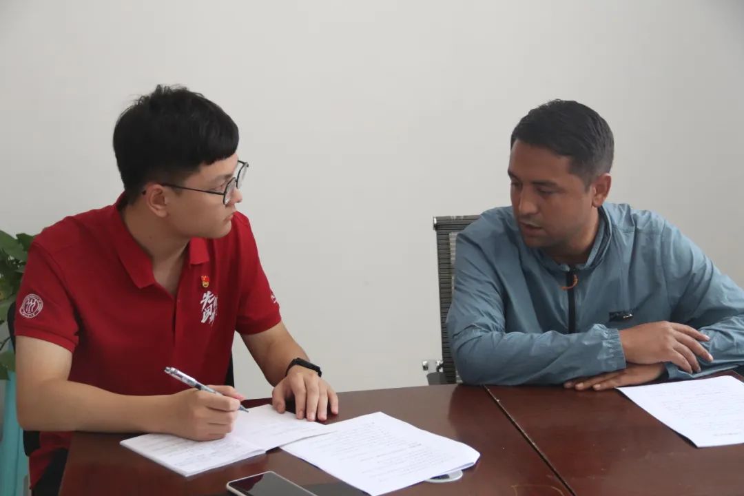 ▲ 博士研究生陈冠锟访谈阿克陶县乡村振兴局党组副书记、局长赵凤楠