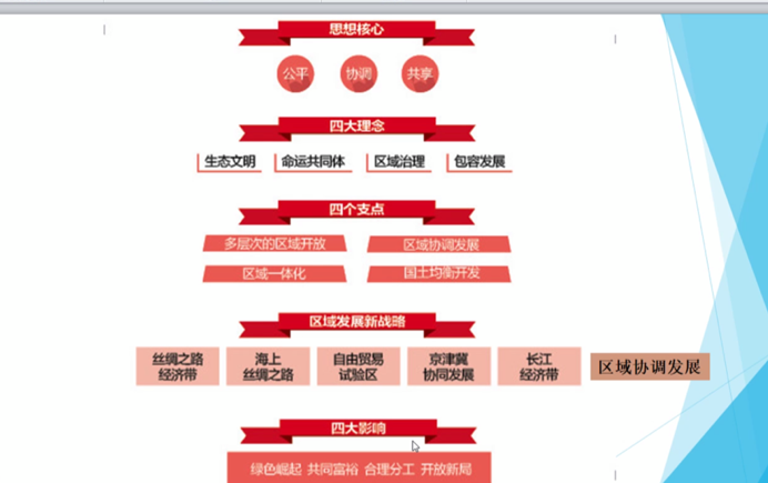 习近平的区域发展观思想核心是“公平,协调,共享”,秉持“生态文明,命运共同体,区域治理,包容发展”四大理念,以“多层次的区域开发,区域协调发展,区域一体化,国土均衡开发”为支点,产生了“绿色崛起,共同富裕,合理分工,开放格局”的四大影响。生态文明观的主要内容是要坚持人与自然和谐共生,推动形成绿色发展方式和生产方式,统筹山水林田湖草系统治理,实行生态环境保护制度。刘老师以浙江新昌和六盘水为例,详细讲述了经济发达地区和资源型城市的绿色发展。最后,刘老师向同学们讲授了以“精准扶贫,内源扶贫,绿色扶贫,合力扶贫”为核心的扶贫开发战略思想。
