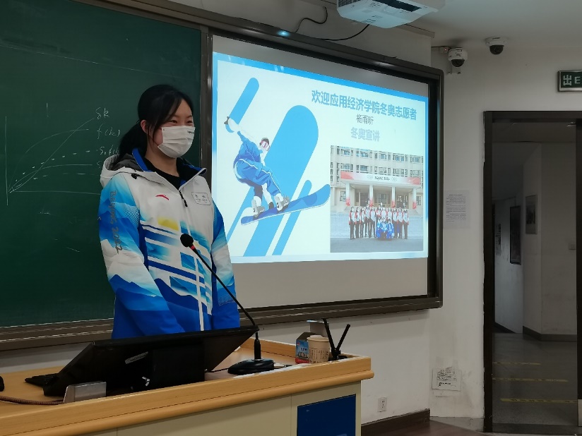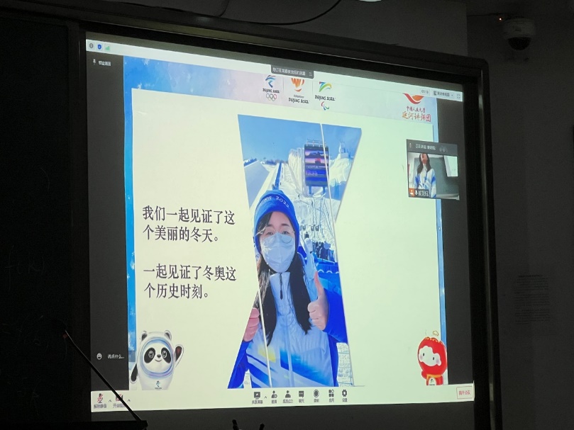 2018级国民经济管理本科生房俊江是观众组织工作组的城市志愿者,她围绕着“城市”、“公司”和“观众”三个关键词向同学们讲述了自己的冬奥故事,分享了自己在这个特殊的春节,在志愿服务时,在校园生活中感受到的“家”的温暖。