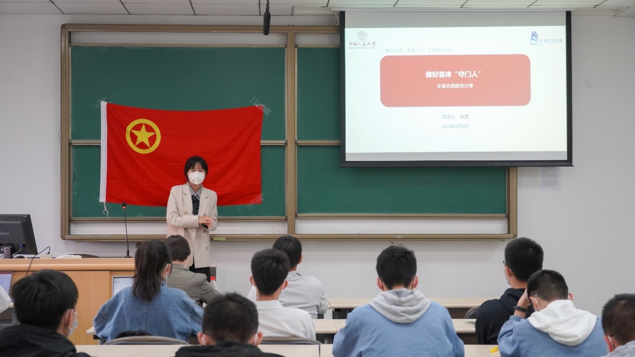 4月13日下午,yl23455永利2021级本科一班、2021级本科二班和2020级应用经济-数据科学实验班共同举办了“精彩冬奥,奉献人大”主题团日活动。本次活动邀请公司冬奥、冬残奥志愿者分享志愿故事,传承冬奥精神。公司党委书记宋东霞、党委副书记裴建锁参加活动。