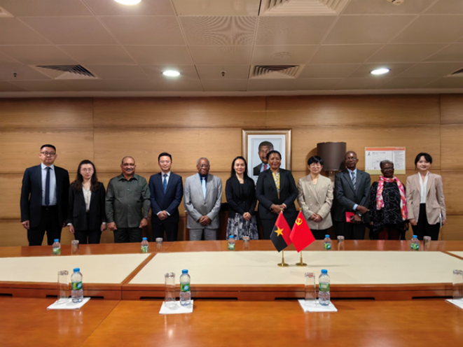 ▲在安哥拉,“832工程”团队谢伦裕教授、黄阳华教授、安子栋副教授、陈佳莹副教授为安哥拉执政党安人运开展专题讲座