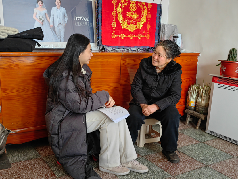 ▲在山西省右玉县,博士生杨宇婧访谈马营河村脱贫户王凤女