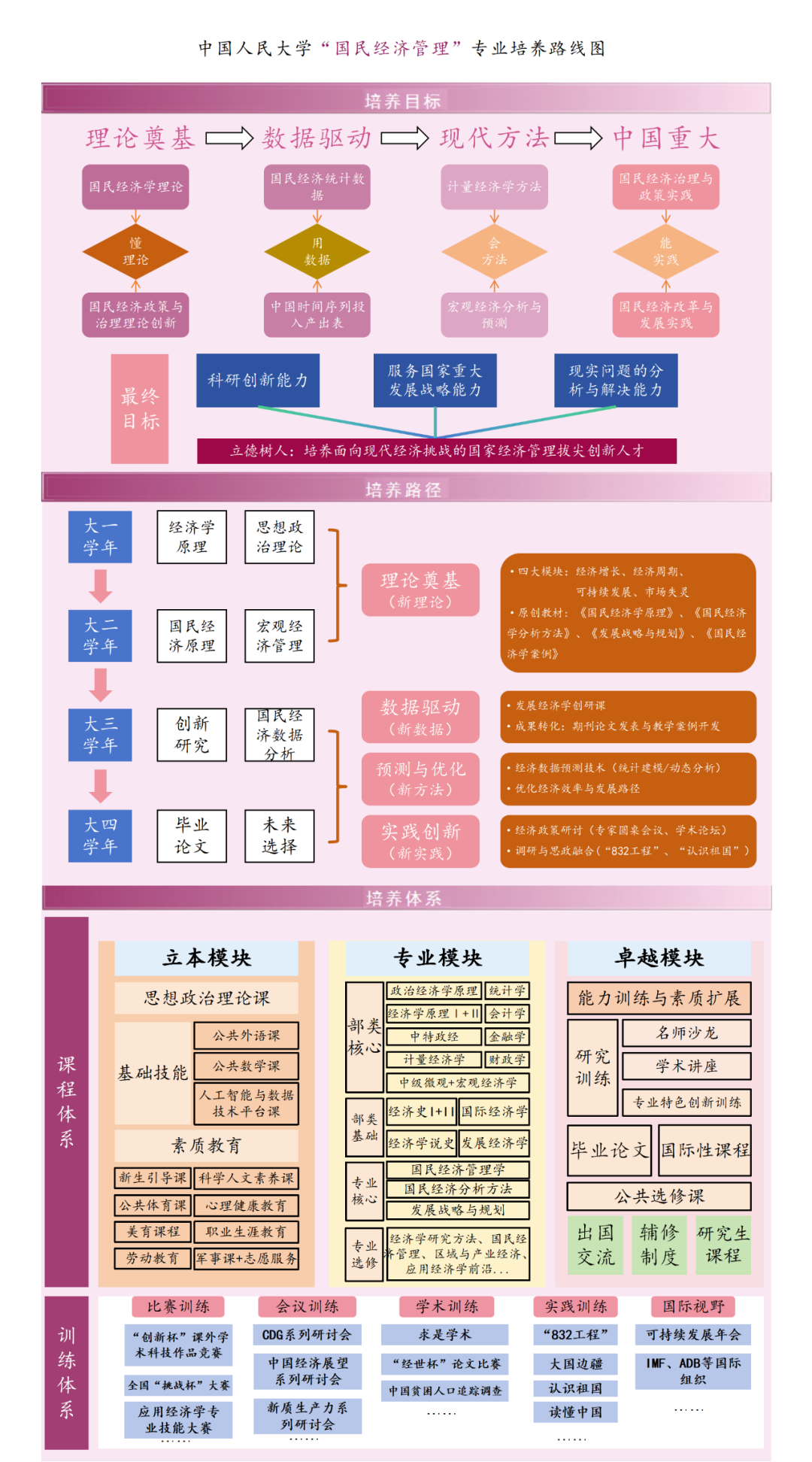 本专业以立德树人为根本任务,致力于培养适应我国现代化建设需要,掌握国民经济管理原理和方法,了解中国国情,具有国际视野的国民经济管理学专业复合型人才,服务国家宏观经济治理体系。