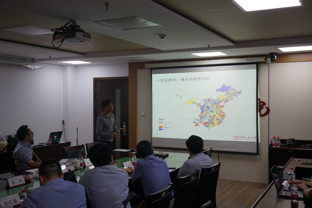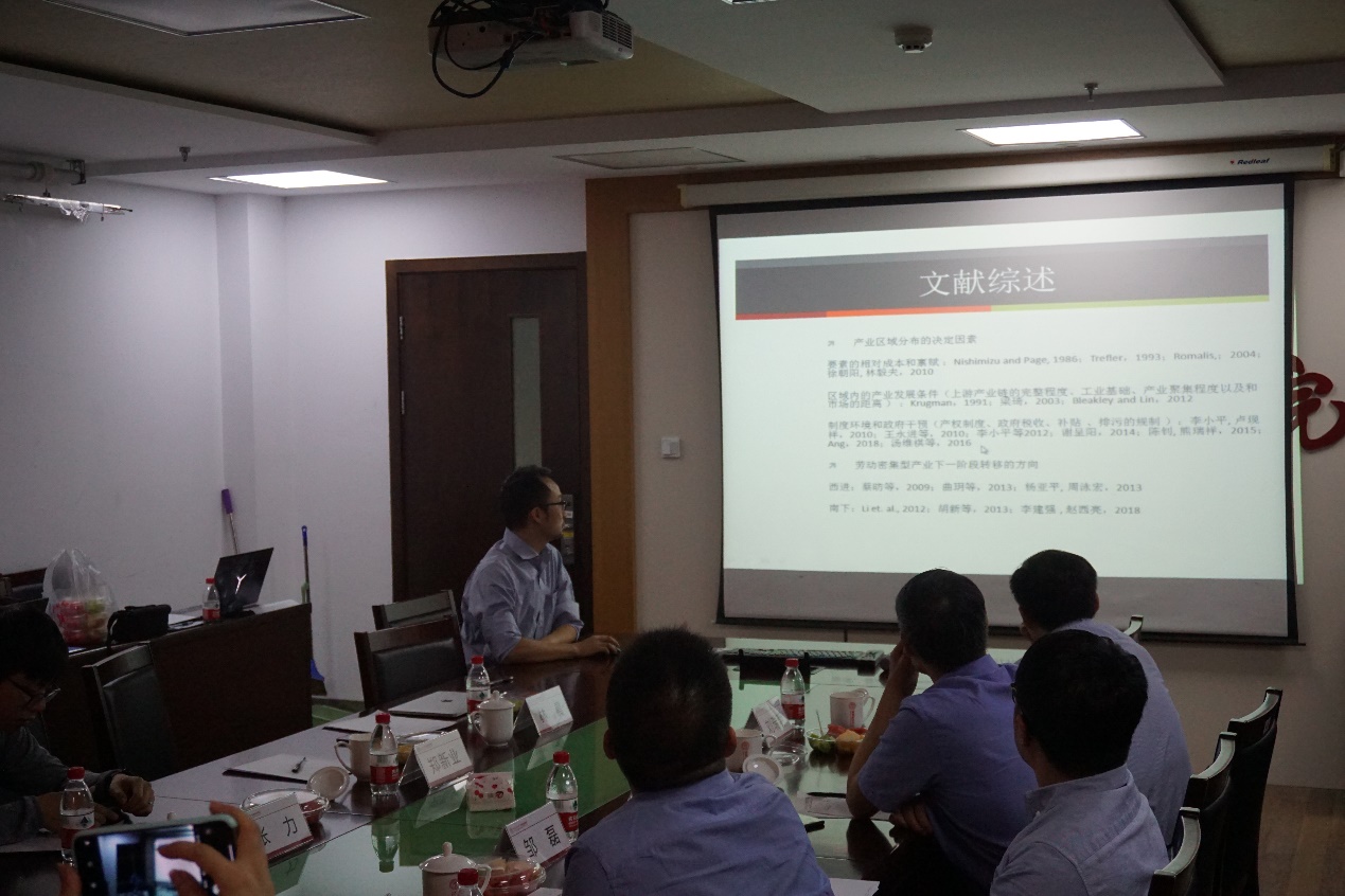 研究生张力以“中国制造业库兹涅茨曲线:证据和政策含义”为题做学术报告。张力利用制造业就业作为解释变量进行回归,并且使用工具变量解决了内生性问题,证实我国城市在工业化过程中经济增长与收入分配的库兹涅茨曲线“倒U型”关系。