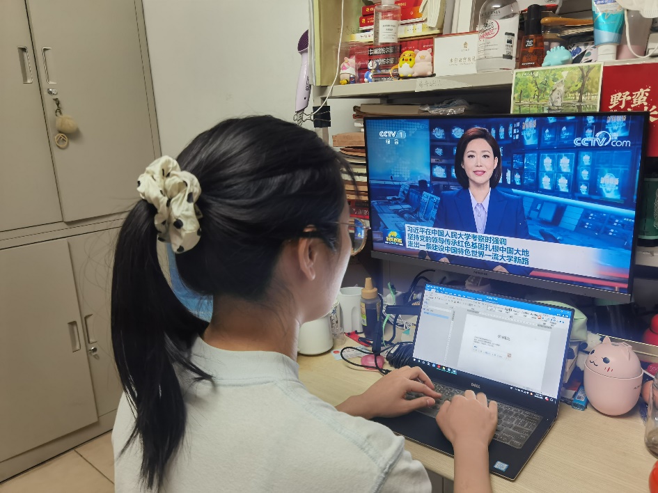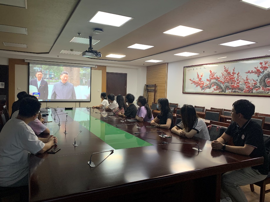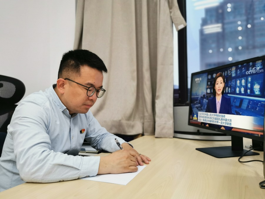 4月25日晚,应用经济公司在明德主楼623会议室组织公司领导干部、教师代表、行政人员代表、员工党员、员工团员代表集中观看新闻联播,学习习近平总书记考察中国人民大学重要讲话精神。同时,所有师生党支部、团支部均以线上与线下相结合,集体学习和党员自学相结合的方式,组织观看新闻联播,学习领会总书记重要讲话精神、分享学习心得体会。