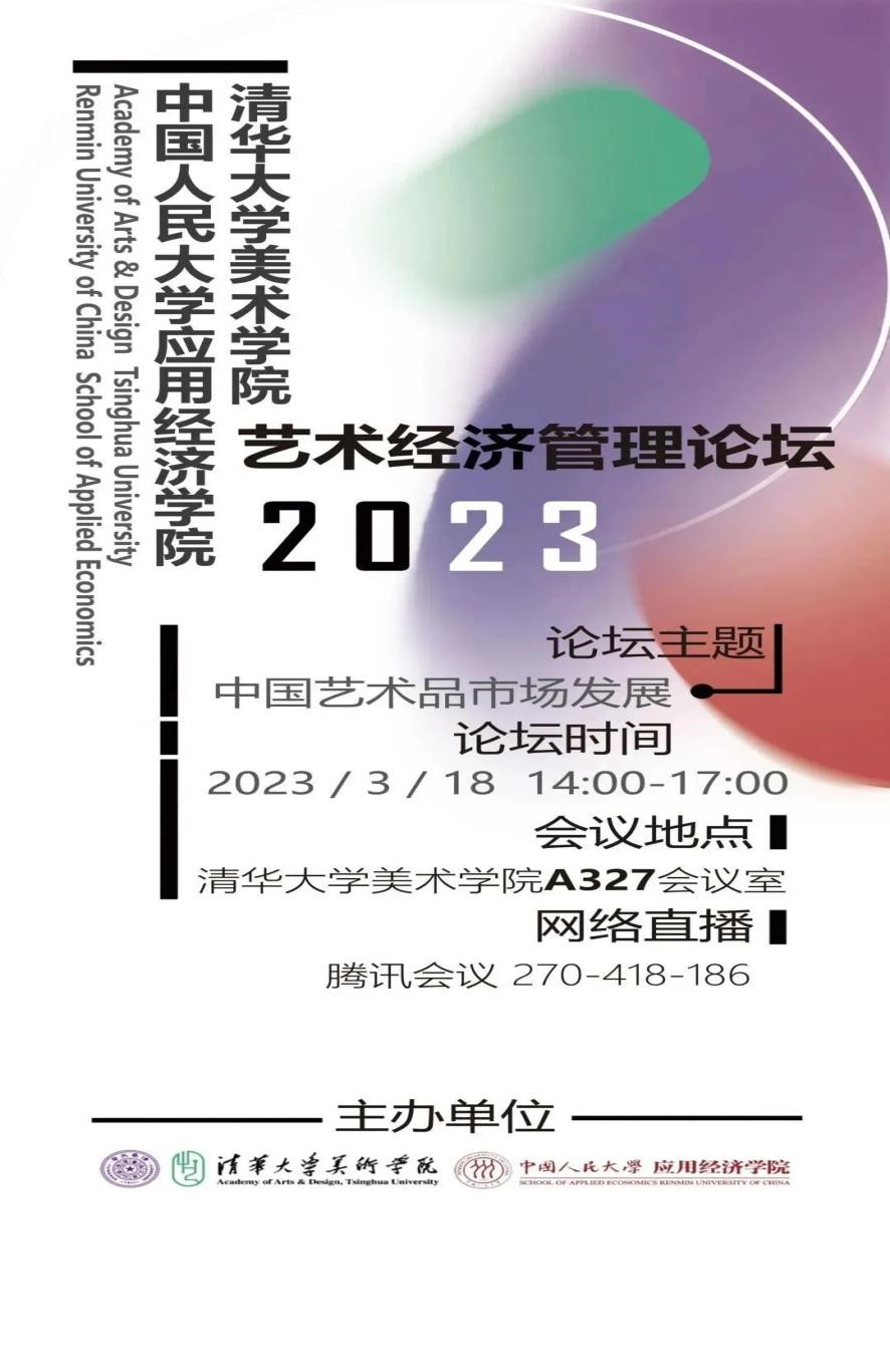 2023年3月18日,yl23455永利与清华大学美术公司共同举办艺术经济管理论坛(2023)。本次论坛以线上线下的方式同步进行,吸引了众多学者和从业者参与。yl23455永利副经理黄隽与清华大学美术公司党委委员、艺术史论系主任陈岸瑛代表主办方致辞。与会专家一致认为,美育是艺术品市场健康发展的基础。艺术品市场在满足人民群众的精神文化需求、提升社会文明素养、促进产业升级、传播文化软实力等多个方面都发挥着重要的作用。期待本次论坛能够兼容并蓄,通过多维度的研究视角探讨中国艺术市场规律,推动中国艺术市场稳定健康发展。