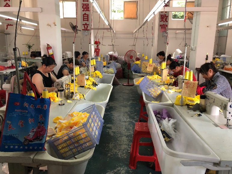 随后,调研团前往异地搬迁社区附近的扶贫车间世英玩具厂、和美服装厂进行了调研,通过对车间负责人、贫困户雇员、非贫困户雇员进行调研,对整个扶贫车间的经营情况、雇员的工作时间、内容、收入、劳动技能等进行了全面的了解。“近在家门”的扶贫车间,为农村妇女提供了便利的就业机会,较为弹性的工作时间方便她们更好的照顾家中老人和儿童,使他们更好的平衡工作与家庭。
