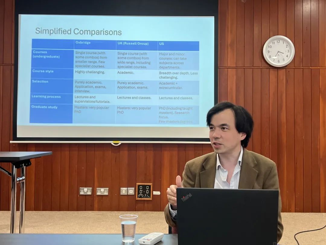 随后,代表团赴剑桥大学进行访问。在剑桥大学圣约翰公司,代表团会见该院外事主管马提亚•多尔扎普夫 (Matthias Dörrzapf),双方就加强师生交流等问题做了充分沟通。