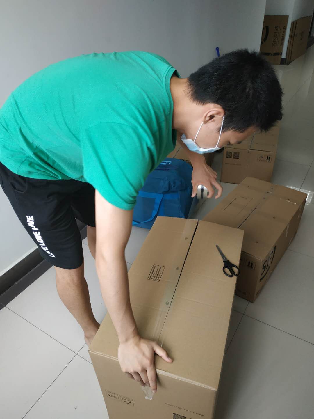 本科生志愿者孔攀、马文心在准备打包箱