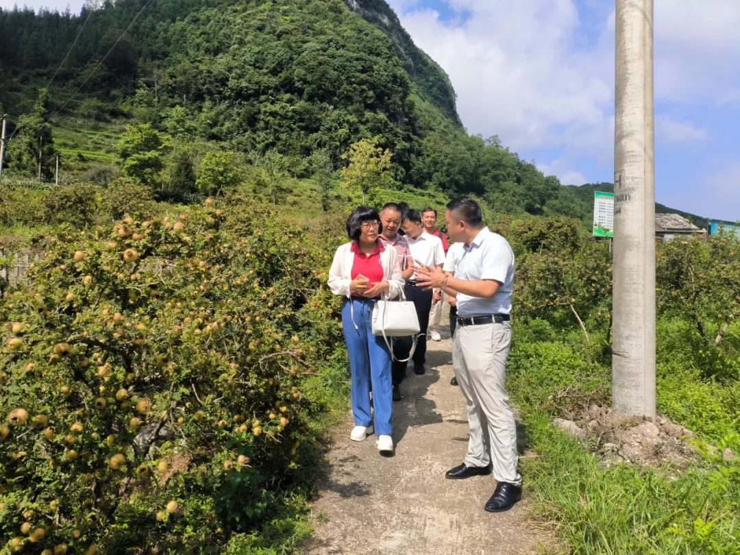 ▲访谈团在野钟乡野钟村贯子冲组刺梨产业园调研