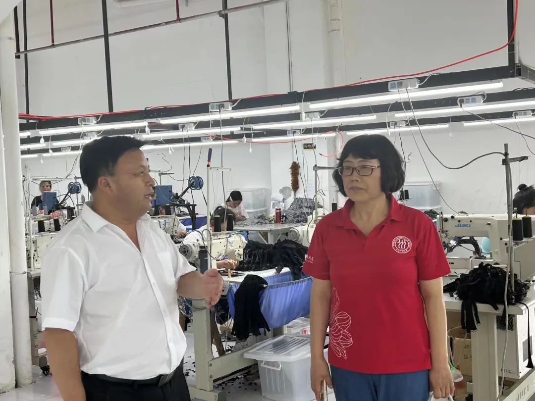 ▲访谈团在鱼塘社区扶贫工厂调研