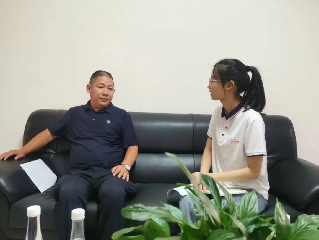 ▲博士生林蔚楠访谈草坝镇党委书记李泓苇