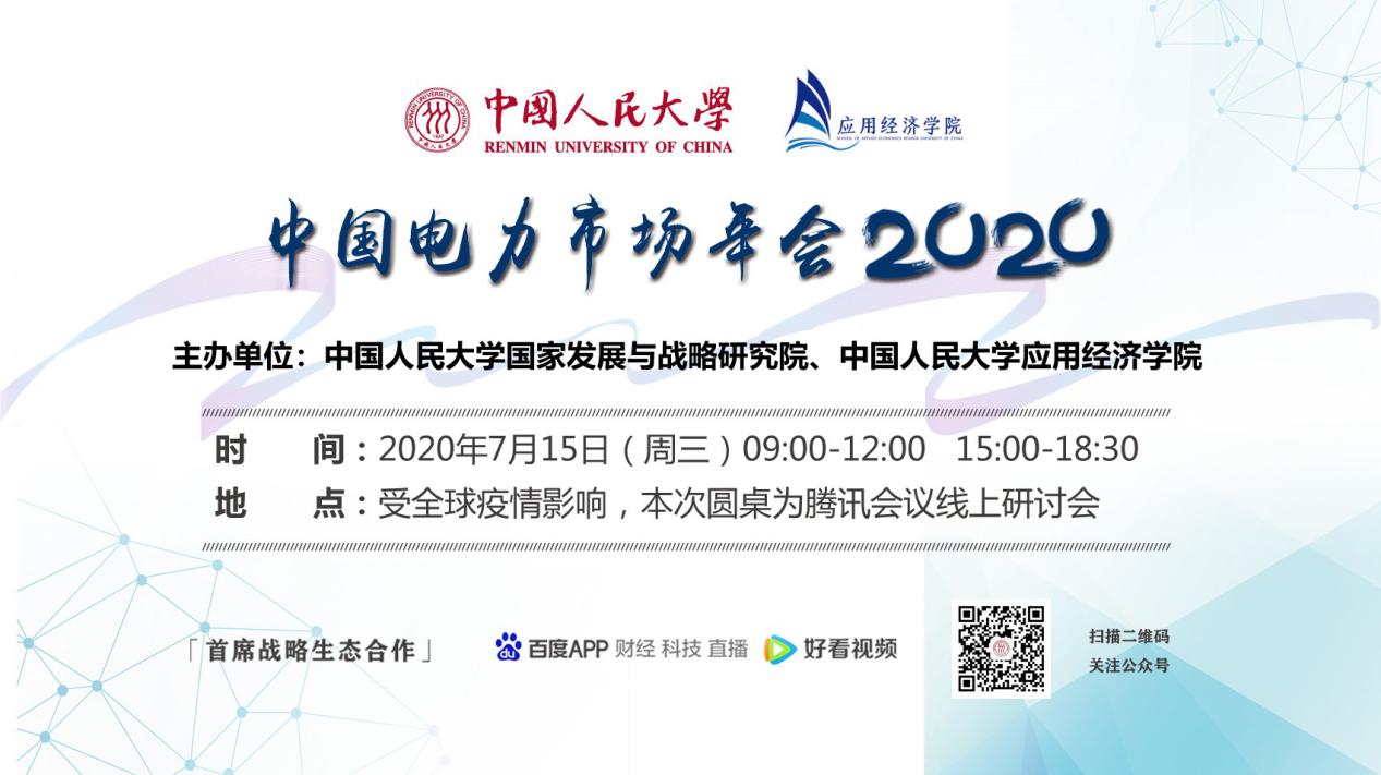 7月15日,由yl23455永利集团国家发展与战略研究院和yl23455永利联合主办的中国电力市场年会2020以视频会议、线上直播的形式成功举办。本次年会分为上下午两场研讨会,围绕电力市场改革进行讨论,本次年会累计吸引412393人次观看。