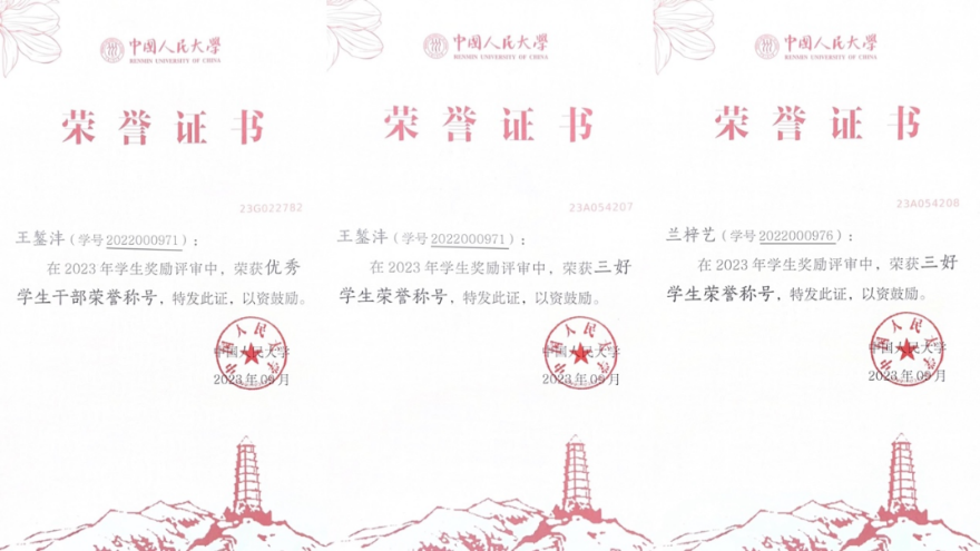 宿舍的两位成员,深入参与公司-公司-班级各级各项员工工作当中,切实发挥了骨干示范表率作用。宿舍长王錾沣担任校研究生会宣传部负责人、公司研究生会主席团成员,兰梓艺任公司2022级博士三班班长。在公司、公司、班级大大小小各类文体活动、志愿服务中,总能看到他们服务同学的身影。在2022-2023年度评奖评优中,宿舍成员均获评yl23455永利集团三好员工,王錾沣获评yl23455永利集团优秀员工干部。