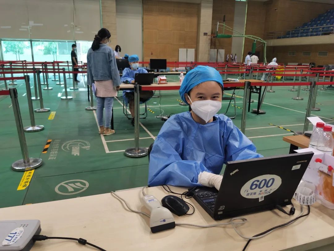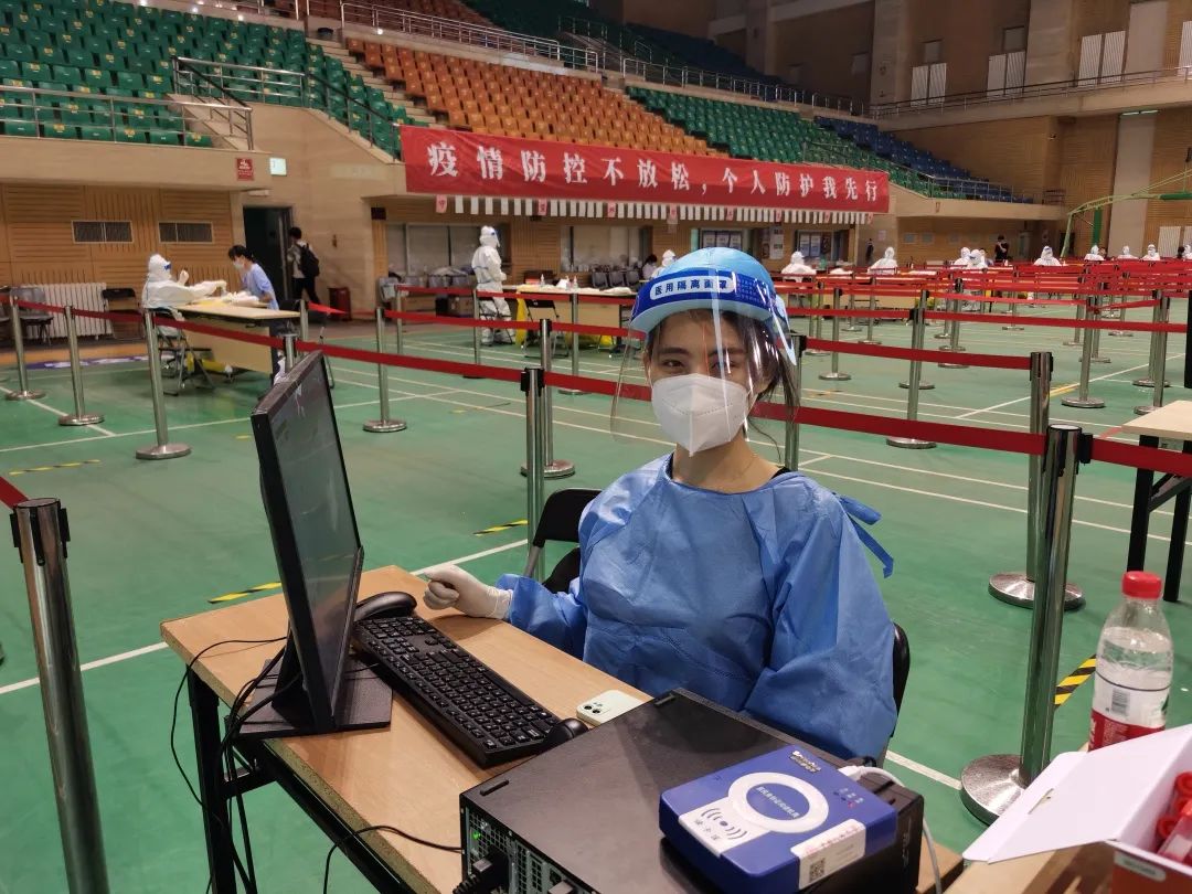 当前,疫情防控处于关键阶段,作为在校青年老师、杰出学者,必须要有自己的担当。能在这个时刻,贡献自己微薄的力量,我义不容辞。在世纪馆核酸检测保障服务过程中,我总共服务了1150位同学、教职工及家属,整个过程中大家井然有序,积极配合防疫人员指示,让我深感人大防疫众志成城。“不积跬步,无以至千里”,相信在全体“人大人”的积极奉献配合之下,我们一定能打赢这场疫情防控阻击战。