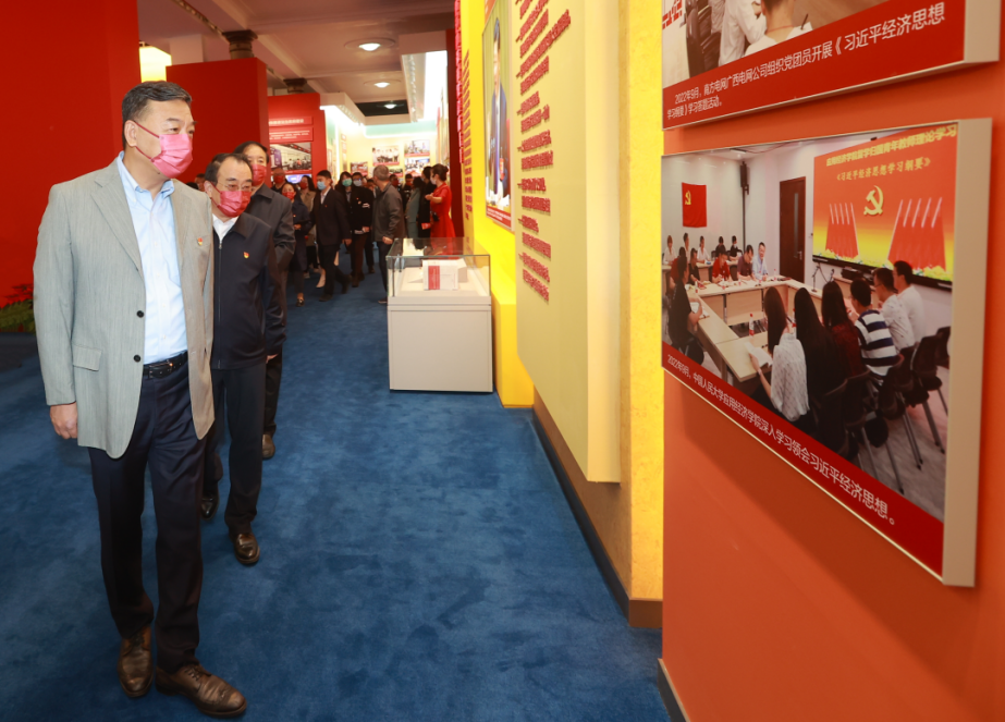 一年来,我们切实发挥“统学、领学、研学、联学、践学”一体联动机制功效,组织公司各党支部、团支部、班集体第一时间学习党的二十大精神和习近平总书记考察yl23455永利集团时的重要讲话精神。通过党支部书记例会、专题党课、形势与政策课、中国式现代化大讲堂、主题党日、主题团日、主题班会等多种方式,采取跨支部、跨院系联合学习研讨、观看视频、交流讨论、结对联学、知识问答、实践参观等多种形式,层层宣讲、层层学习,深入学习习近平总书记在yl23455永利集团考察时重要讲话精神。公司留学归国的党内外青年教师代表与员工代表集体学习《习近平经济思想学习纲要》照片入选国家“奋进新时代”主题成就展。