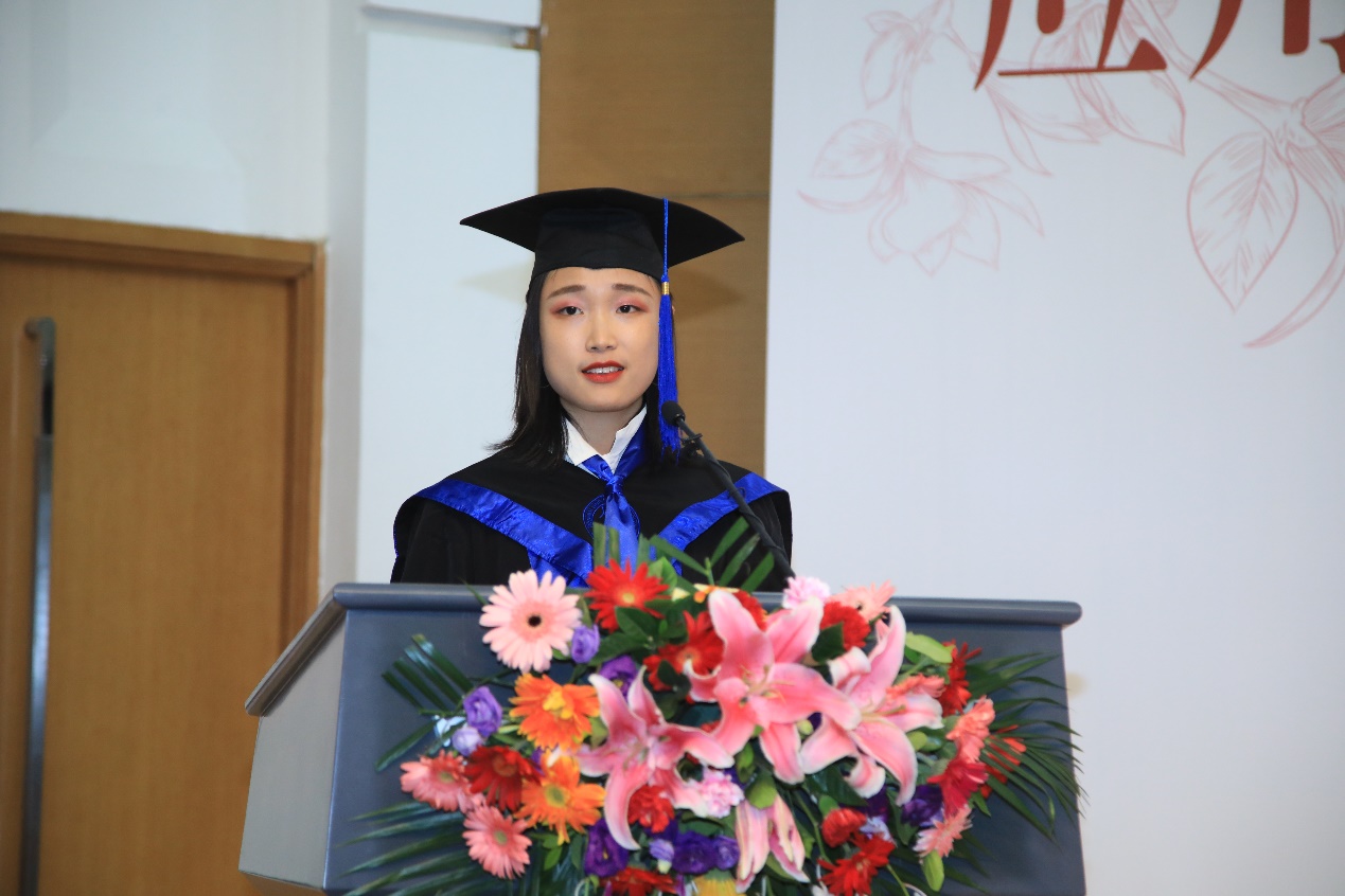 国民经济管理系本科生葛施彤,土库曼斯坦职工迈尔丹,优秀研究生学位论文获得者邵璇璇作为毕业生代表发言。他们都真诚地表达了对毕业生的祝贺、对母校和公司的热爱、对老师培养的感恩及对未来人生的希冀,表示将踏实有为、勇于担当,不负母校的期望。