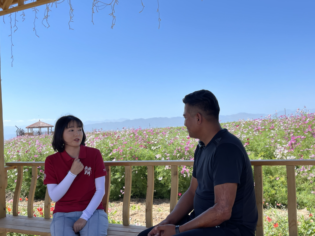 调研团首先来到乌图布拉格镇,该镇原本主要发展畜牧业,村民以放牧为生,2017年,在“访惠聚”工作队和村“两委”的带领下,全镇上下种植700余亩既有药用价值又有观赏价值的芍药花,通过打造特色产业,发展乡村旅游,每到芍药花盛开时节,这里将隆重举办芍药花文化节,不久前,这里刚刚举办第三届芍药花文化节,吸引了一万多名旅客前来观赏打卡。除了五月盛开的芍药花,多年来,乌图布拉格镇一直致力于通过产业振兴带动村民就近创业,提高村民收入,从而实现乡村振兴,春季的赛马比赛和骑马项目吸引了年轻人前来体验、夏季的芍药花、各色菊花竞相绽放形成壮观花海、秋季的果树硕果累累销量飙升、冬季的滑雪场吸引来自各地的冰雪爱好者前来训练、运动;儿童游乐场、钓鱼台、农家乐、特色民宿等等已积极带动当地旅游业发展,如今,在博乐市政府的大力支持下,乌图布拉格镇的特色旅游业发展的愈发壮大且丰富,更是吸引了越来越多的老员工返乡创业,为乡村发展注入新时代新动力。调研团师生通过对村党委书记和民族模范先进个人的访谈与交流,对边疆地区产业振兴、文化振兴、人才振兴等方面有了更加深入的认识和体会,乡村振兴大有可为。