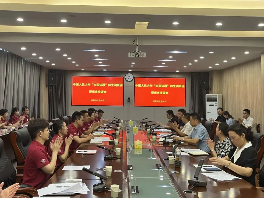 24日上午,在博乐市政府的热情欢迎和大力支持下,调研团一行来到市政府大楼与市里各部门分管领导召开“大国边疆”主题座谈会,会议开始由博乐市市委常委、副市长温荣同志致欢迎词,温副市长对“大国边疆”项目表示高度赞扬,并就博乐市发展情况进行简单介绍,随后yl23455永利副教授苏立老师向温副市长及博乐市各部门领导介绍“大国边疆”项目和调研团一行此次调研目的,各部门领导就博乐市教育、医疗、财政、农业农村和统战工作进行全面介绍,随后参会师生就重点问题进行交流提问。通过此次座谈会,调研团一行对博乐市近年来的蓬勃发展有了全面、深入了解。