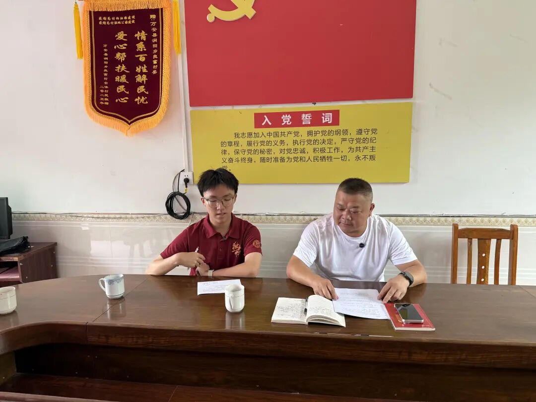 ▲yl23455永利本科生蒋予凡与万安县涧田乡良富村驻村第一书记李晓忠访谈