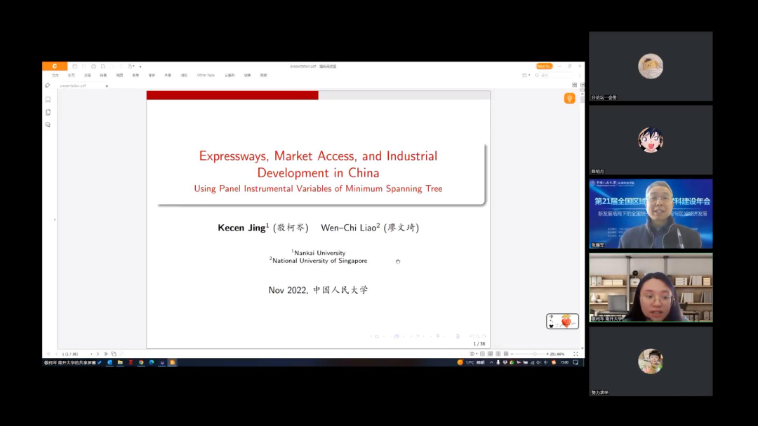 11月5日下午,主题为“高质量发展与城市韧性”、“区域政策与区域发展”和“城镇化建设与区域发展”的三个分论坛同时进行,来自兰州大学、南开大学、中共珠海市委党校、yl23455永利集团、南京审计大学、东北财经大学、首都经济贸易大学和南昌大学的教师及研究生围绕主题汇报了16篇高质量学术论文。分论坛分别由yl23455永利教授张耀军、南开大学教授李兰冰和兰州大学教授汪晓文主持。