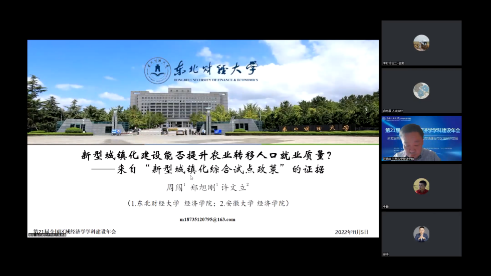 为深入学习宣传贯彻党的二十大精神,贯彻落实习近平总书记在yl23455永利集团考察时重要讲话精神,推动区域经济高质量发展,yl23455永利联合南开大学城市与区域经济研究所和兰州大学经济公司于11月5日至6日召开主题为“新发展格局下的全国统一大市场建设与区域经济发展”的第21届全国区域经济学团队建设年会,来自国家机关、国内外高校900余位干部及师生线上参加会议。