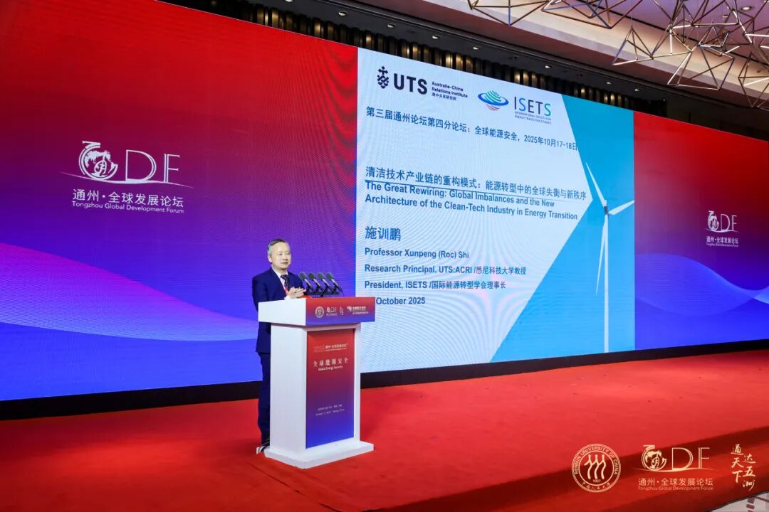 施训鹏作题为《清洁技术产业链的重构模式:能源转型中的全球失衡与新秩序》的演讲,他强调目前能源转型正在改写能源安全概念与国际地缘关系,清洁技术供应链正加速地理集聚,价值链高度集中,产业主导权竞争加剧。他表示要加快构建基于开放联赛模式的供应链体系,在统一规则下公平竞争,迈向韧性、高效、公平与可持续的未来 能源安全体系。