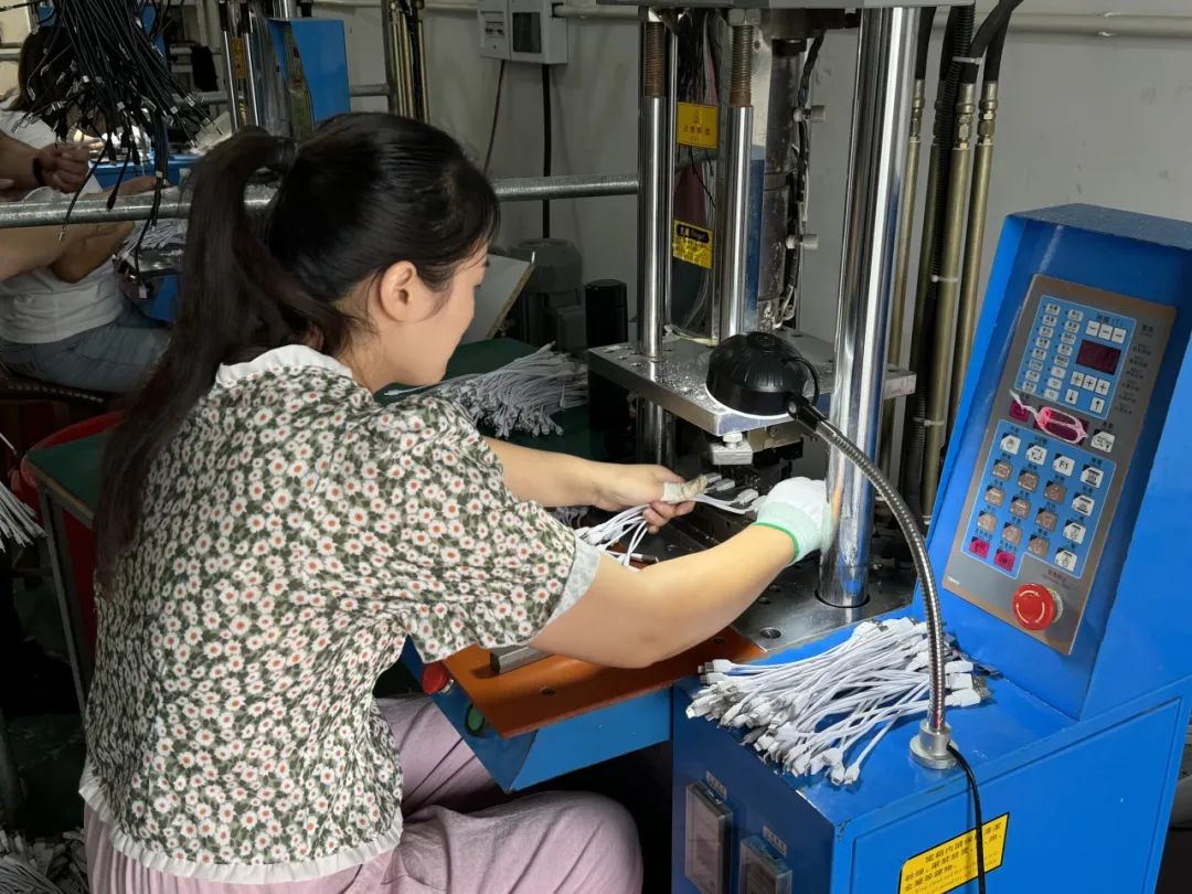▲数据线电子厂的工作人员正操作机器