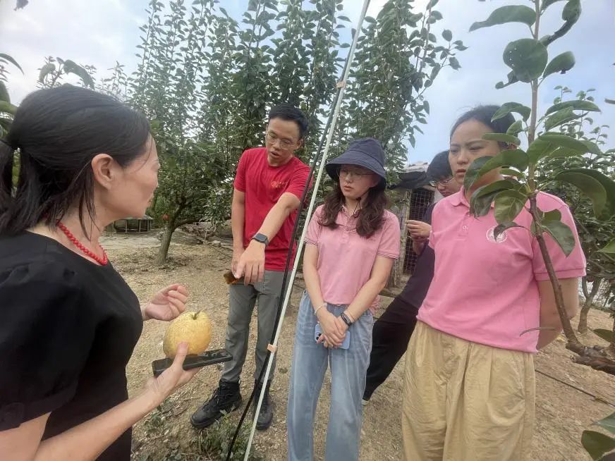 ▲访谈团在古塘乡牛山园金秋梨基地