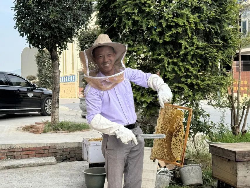 ▲脱贫户李卫红取蜂巢