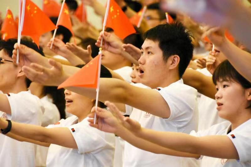 在天安门广场现场聆听学习习近平总书记发表的重要讲话,应经学子用歌声、欢呼声全情投入到盛典之中。