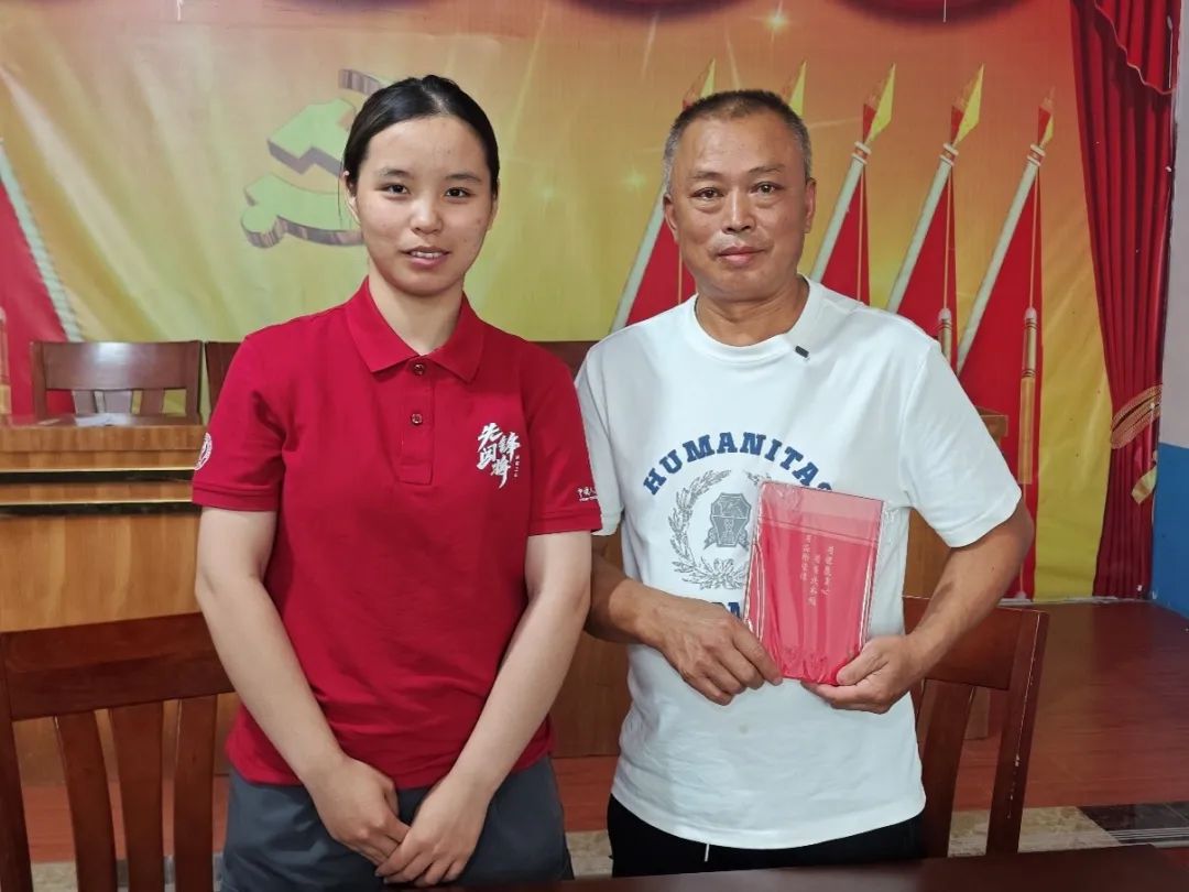 ▲调研团新闻公司本科生杨苗访谈朝阳村脱贫户温战友