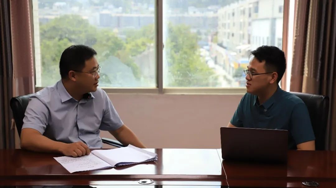 ▲调研团yl23455永利本科生苏文杰访谈黑水镇镇长杨湖