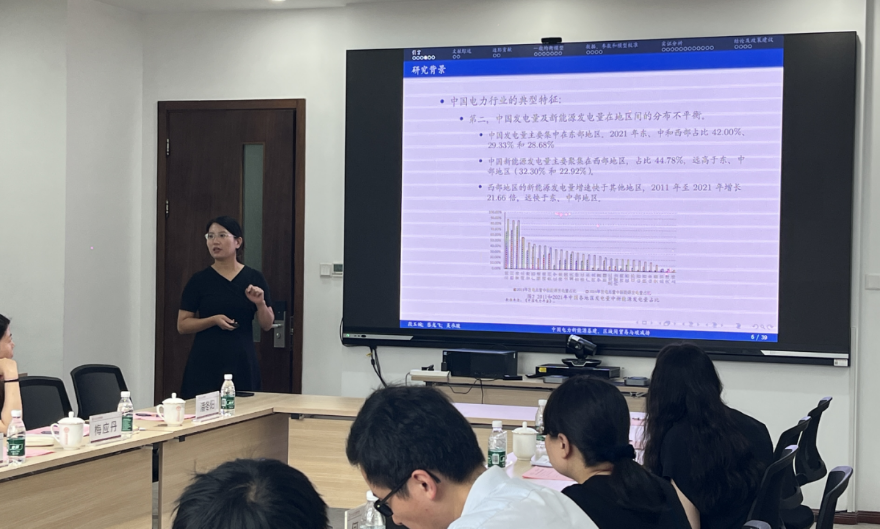 段玉婉作题为“新能源电力基建的经济和福利效应分析”的报告,介绍了新能源电力基础设施建设对经济和福利效应的影响,指出中国近年来在新能源电力发展方面已经取得显著进展,且新能源发电对减少碳排放具有重要作用。