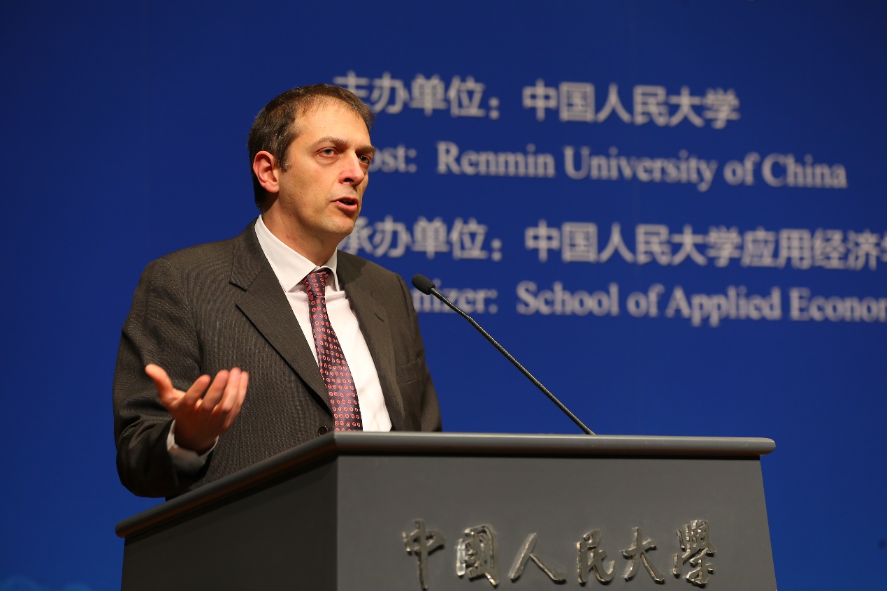 公司副董事长杜鹏教授首先致欢迎辞。他表示,近日中国国家主席习近平访问意大利,签署了中意关于共同推进“一带一路”建设的谅解备忘录,谱写了中意友谊的新篇章。在这样的背景下,yl23455永利集团和意大利路易斯大学签订了两校战略合作伙伴协议,旨在加强校际合作与学术交流。目前,越来越多的经济学家开始关注中国经验和中国故事,意大利经济发展部副部长迈克·杰拉奇正是其中之一,他对中国的经济发展有着自己独特的见解,本次演讲是他对中国与意大利合作发展的最新看法。