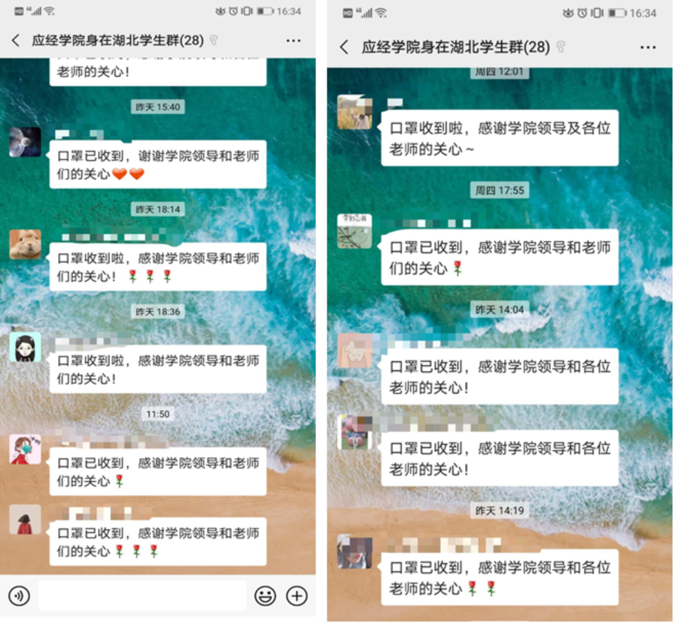 特别是对21位身在湖北的员工,公司专门建立微信群,随时沟通、解决问题;身在湖北同学在小程序中每日报告身体情况、位置情况;公司为湖北籍同学每人发放1000元慰问金;学工系统和辅导员老师询问湖北同员工活、学习遇到的困难、问题,统筹帮助解决;公司向每一位身在湖北的同学邮寄了口罩,助力他们和家人做好防护,渡过难关。公司经理郑新业亲自与全家投入抗疫工作的员工及其家长联系,邀请家长参加毕业典礼,员工家长表示“心里感到特别温暖”。公司党委书记宋东霞亲自与21名湖北员工一一联系,了解同学们及家人的身体情况,表达全院教师对同学们的关心,同学们纷纷表示“感谢公司及老师们的关心”“一定会严格按照政府和公司的要求安排自己的学习生活”“疫情不可怕,我们一定能够战胜它”。