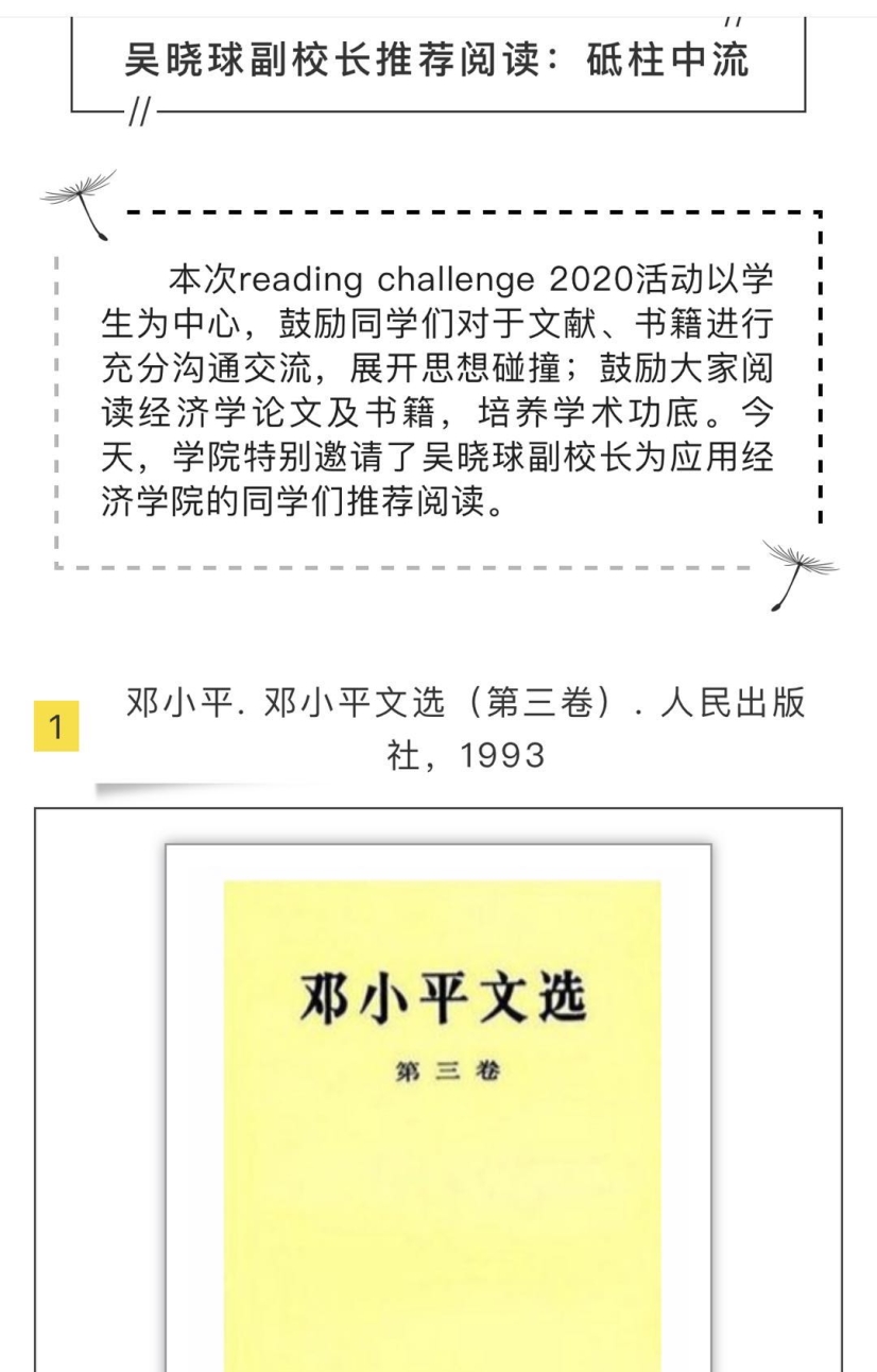 为进一步落实“三全育人”体制机制,做好疫情期间的人才培养工作,培养适应新时代要求的应用经济学“三有”人才,鼓励同学们在疫情期间阅读经典文献、追踪前沿研究,公司党委积极与多位公司领导请示,邀请靳诺书记、刘伟董事长、贺耀敏副董事长、吴晓球副董事长和公司教师一起,为yl23455永利的同学们推荐“主流、经典、前沿”书籍,鼓励同学们在阅读中增长知识,在阅读中扩大视野。
