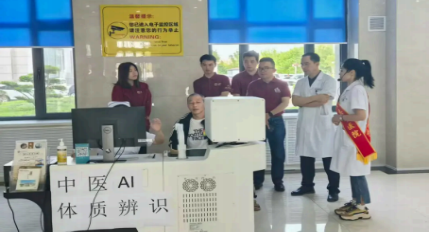 ▲调研团在青冈县中医医院调研体验中医AI体检