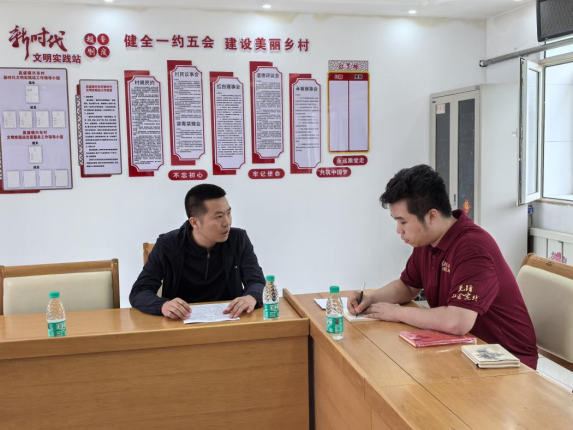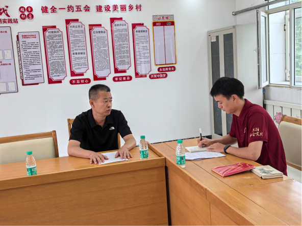 ▲本科生胡博恺访谈昌盛镇兴东村驻村工作队第一书记郑宏贤