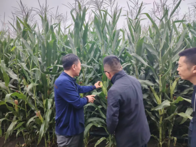 ▲当地领导介绍昌盛镇农业科技示范展示基地玉米种植