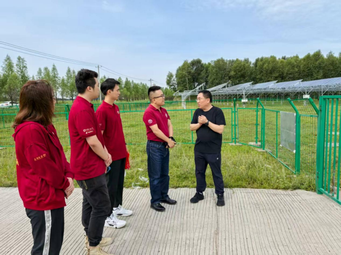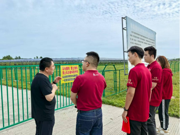 ▲孙洪涛局长在南园区向东光伏联村电站为访谈团讲解当地光伏产业政策