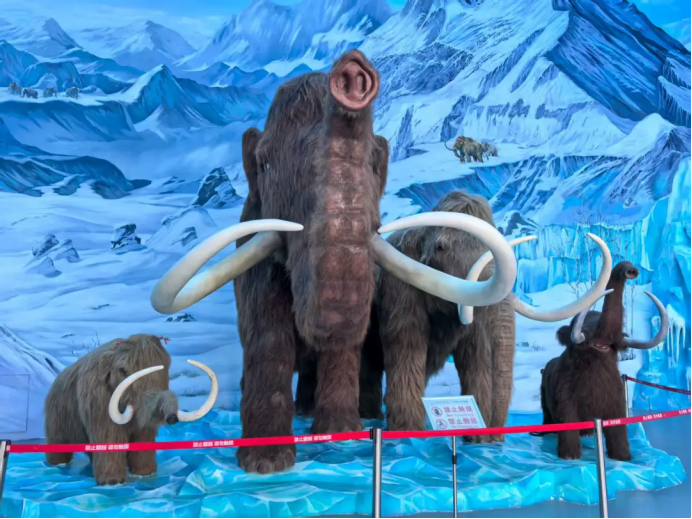 ▲博物馆入口处的仿真猛犸象
