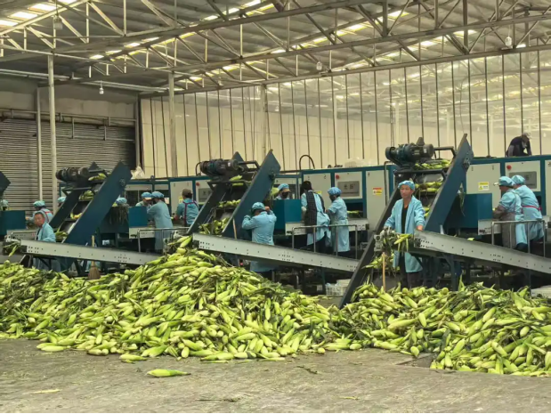 8月21日下午,调研团到达万德福食品有限公司,车间内鲜食玉米正在流水线上完成“蜕变”。总经理阮万超为我们介绍展示“小玉米”的“大文章”。
