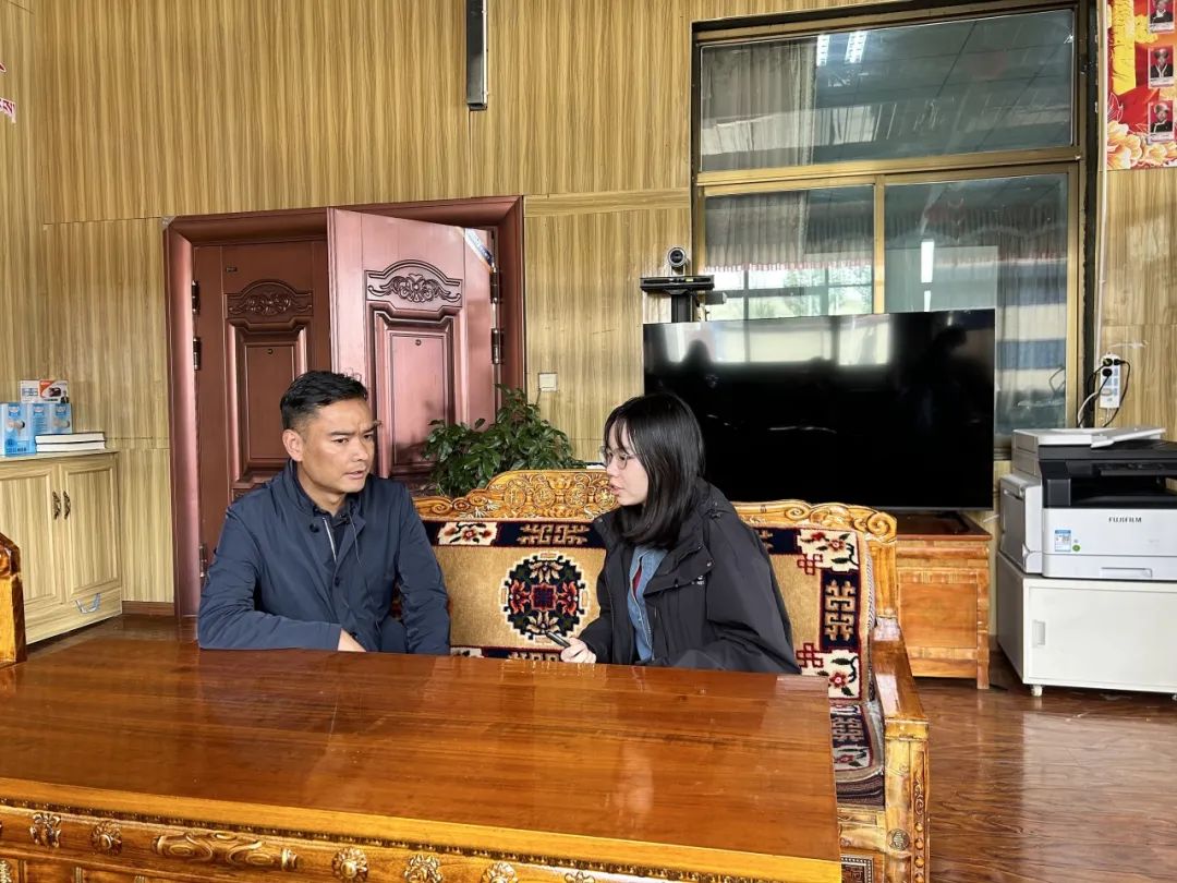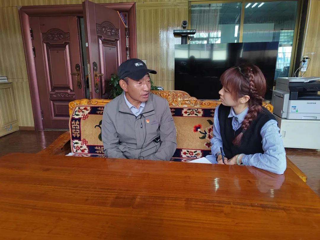 ▲西藏大学经济与管理公司硕士生任文丽访谈农业农村和科技水利局副局长洛桑