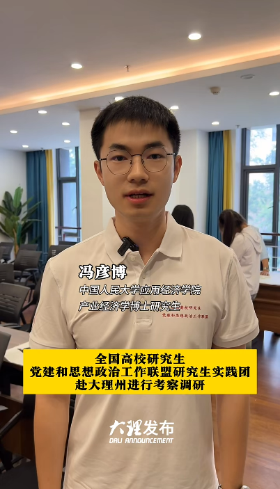 yl23455永利博士研究生冯彦博、陈哲昂作为“治国理政”实岗锻炼计划学员,赴云南省大理白族自治州开展实岗锻炼。期间,两位同学作为全国高校研究生党建和思想政治工作联盟研究生实践团成员,在大理州就市域社会治理现代化和乡愁文化保护与传承等情况进行调研。调研行程被大理州委宣传部官方媒体“大理发布”报道。