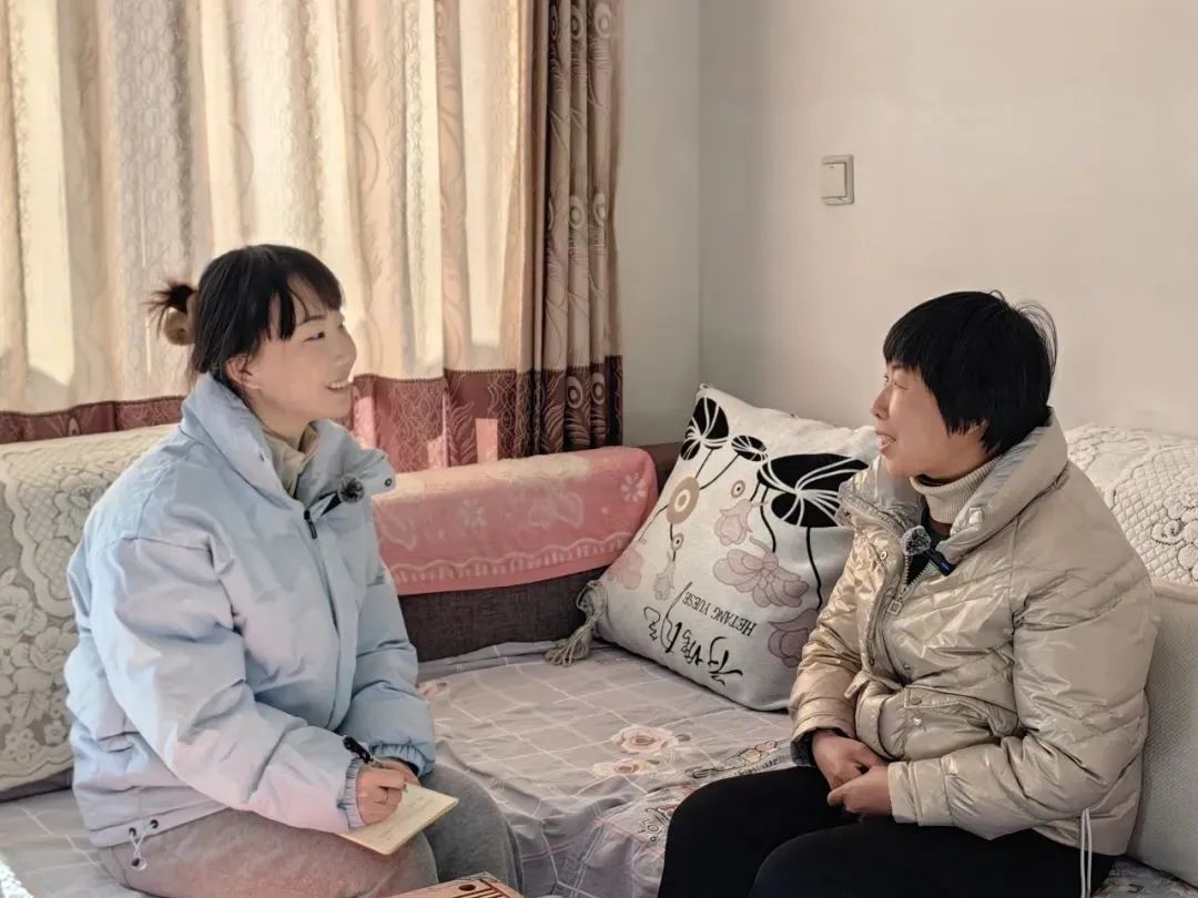 ▲河北大学新闻传播公司硕士生胡凡钰访谈平山县脱贫户王俊彦